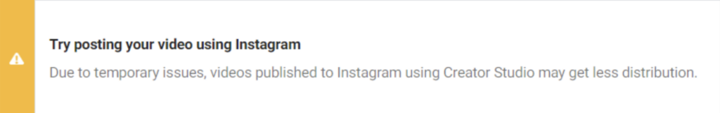 Sono stati evidenziati bug di sistema anche all’interno di Creator Studio nella pubblicazione di video sul feed Instagram.
